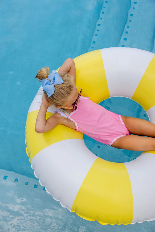 Our Long Bay Bathing Suit in vibrant Hamptons Hot Pink with Worth Avenue White & Multicolor Ric Rac brings coastal charm to her swimwear collection. This adorable girls' swimsuit features playful ric rac trim and quality construction that's perfect for pool days, beach vacations, and summer adventures. This piece is a swimwear favorite that makes every sunny day special.